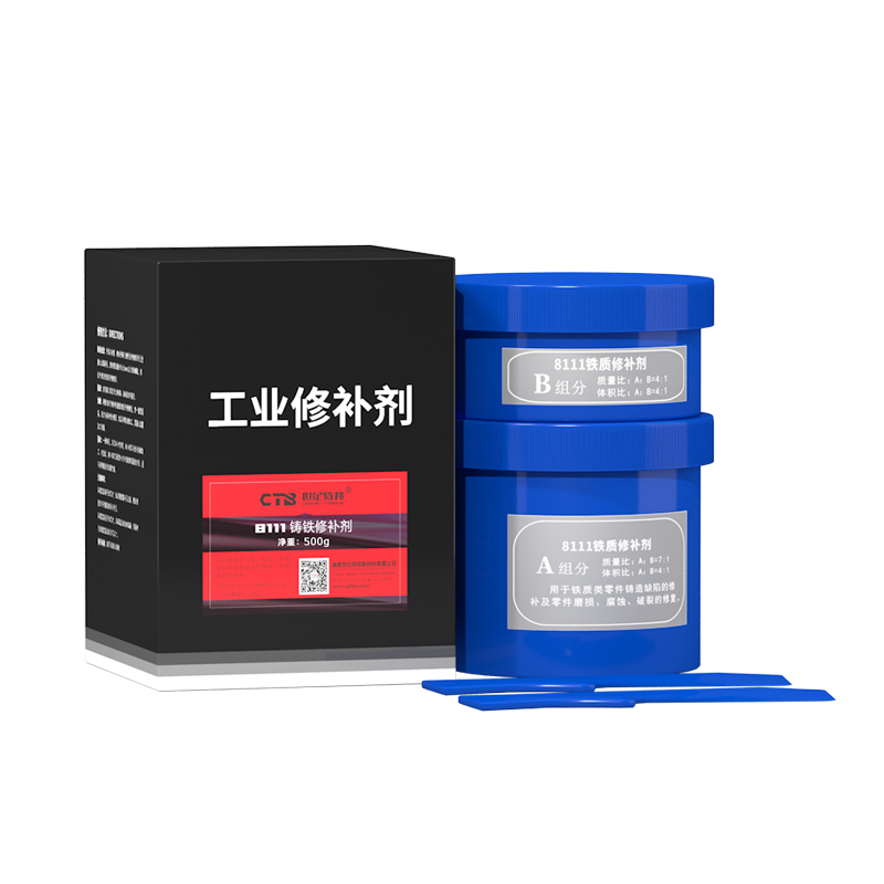雙組份,鑄鐵色,泥狀是由多種合金材料和改性增韌耐熱樹脂進行復合得到的高性能聚合金屬材料固化后硬度高、無收縮,顏色與基件保持一致,可進行各類機械加工具有耐磨、耐老化、耐油、防水、耐腐蝕、耐高溫。用于鑄鐵件氣孔、砂眼、縮孔裂紋等鑄造缺陷的修復及鑄鐵零件磨損、劃傷、腐蝕、破裂的修復,也可用于管件漏油、漏水密封。