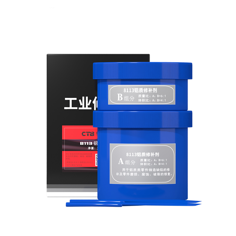 由多種合金材料和改性增韌耐熱樹脂進行復合得到的高性能聚合金屬材料雙組份,鋁色,泥狀用于修復鋁件的鑄造缺陷,箱體裂紋,磨損,劃傷的修復。也可用于鑄鋁件氣孔,砂眼的修補與再生。固化后硬度高、無收縮,可進行各類機械加工具有耐磨、耐老化、耐油、防水、耐腐蝕、耐高溫。